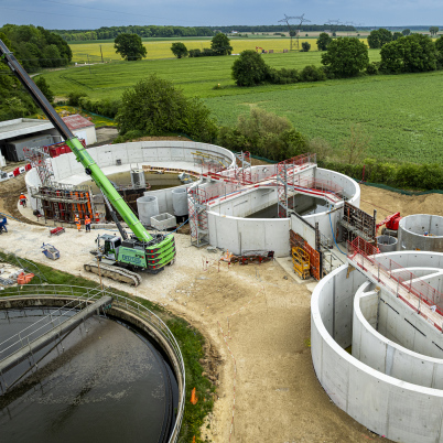 Une nouvelle Step de type « boues activées en aération prolongée » a été livrée en juillet 2022 par Sogea Rhône-Alpes, en groupement avec Campenon Bernard Centre-Est. Pour cet équipement d’une capacité de traitement de 11 000 équivalents-habitants, le béton utilisé, optimisé en carbone, offre plusieurs avantages : économiser plus de 80 teq CO2 (tonnes équivalent CO2), réduire de 20 % les émissions par rapport à un béton autoplaçant traditionnel, gagner en qualité de parement, obtenir une meilleure perméabilité à l’eau et à l’air, et limiter la pénibilité sur le chantier.