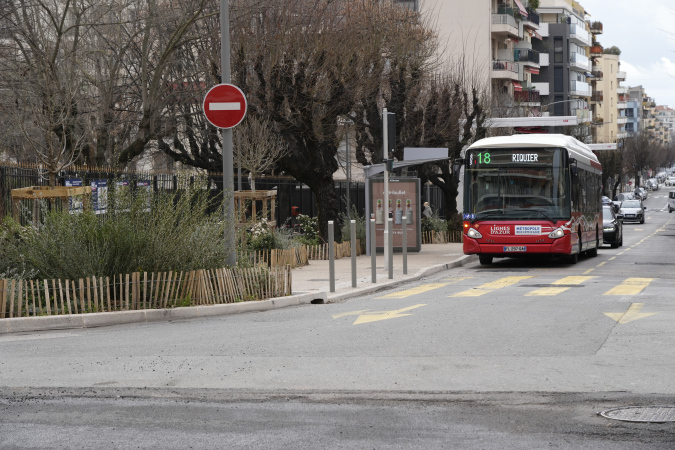 Au nord de Nice, la place du Général Goiran a été réaménagée pour accueillir le bus à haut niveau de service (BHNS). Au-delà de cette infrastructure, l’objectif était de transformer ce carrefour en un véritable lieu de vie, végétalisé et convivial.
